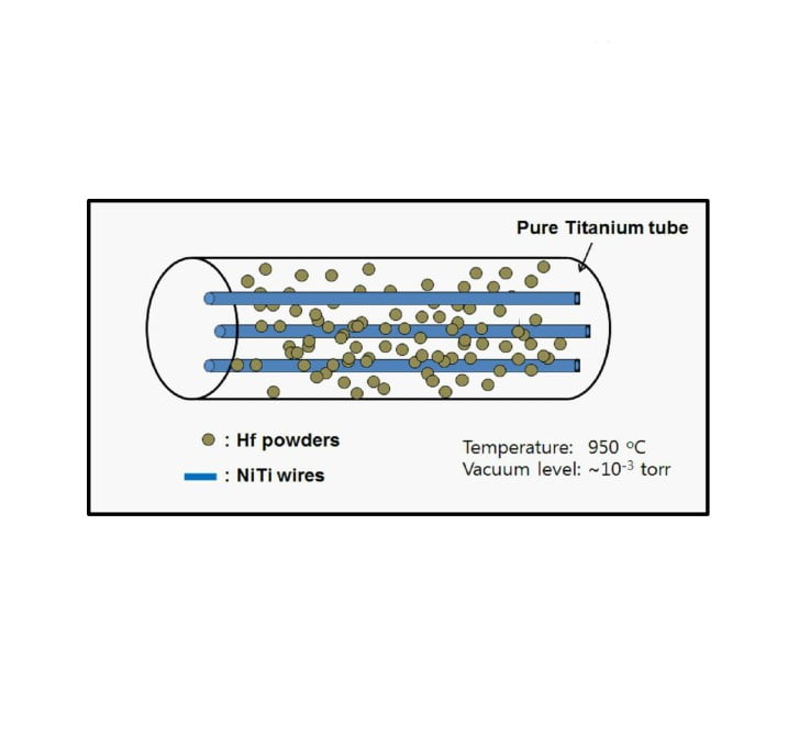 테이션법을 이용하여 와이어 표면에 하프늄을 확산 및 침투시킴으로써, 형상 기억 특성의 저하 없이 현저히 작은