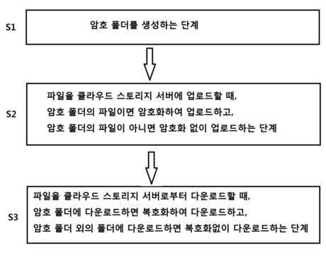 요약 : 본 발명에 의한 클라우드 스토리지 암호화 시스템은, 클라우드 스토리지 서버 및 단말 컴퓨터를 포함하는 클라우드 스토리지 암호화 시스템에 있어서, 단말 컴퓨터의 저장부의 일부 디렉토리를 암호 폴더로 생성하고, 상기 암호 폴더에 저장된 데이터를 클라우드 스토리지 서버로 업로드할 때에는 암호화 키로 암호화하여 저장하고, 상기 암호 폴더로 다운로드할 때는 상기 암호화 키로 복호화한 후 저장하고, 단말 컴퓨터의 디렉토리 중 상기 암호 폴더 외의 디렉토리의 데이터는 암호화 없이 클라우드 스토리지 서버로 업로드 및 다운로드하는 것을 특징으로 한다.