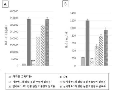 요약 : 본 발명의 목적은 강황 분말을 함유하는 발효유 및 이를 포함하는 면역증강용 조성물에 관한 것이다. 상기 발효유는 TNF-α 및 IL-6와 NO 생성을 증가시키는 효과가 우수하여 면역증강용 조성물로 유용하게 사용될 수 있다.