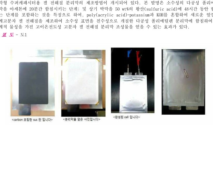 요약 : 박막형 수퍼캐패시터용 겔 전해질 분리막의 제조방법이 개시되어 있다. 본 발명은 소수성의 다공성 폴리에틸렌