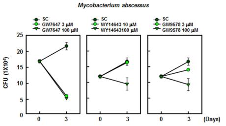 대표청구항 : 하기 화학식 1, 화학식 2 또는 화학식 3의 구조를 갖는 PPAR(peroxisome proliferator-activated receptor) alpha 작용제(agonist)를 유효성분으로 함유하는 결핵균 또는 비결핵항산균 감염 질환 치료용 약학 조성물.[이미지] (화학식 1)[이미지] (화학식 2)[이미지] (화학식 3)