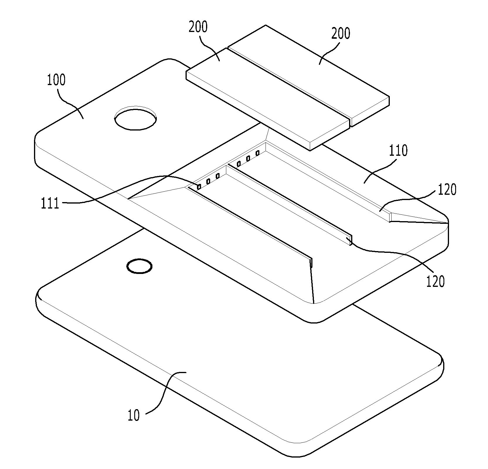 발명자설명 : 스마트폰에 추가 기능을 지원할 수 있는 유틸리티 특허입니다. 소비자는 개별기능을 포함하는 모듈을 선택해 케이스에 장착하게 되며, 스마트폰은 케이스에 장착된 기능모듈을 인식해 확장된 기능을 스마트폰에 제공합니다.(예시. 환경센서 감지기능, 체혈기능 등)
