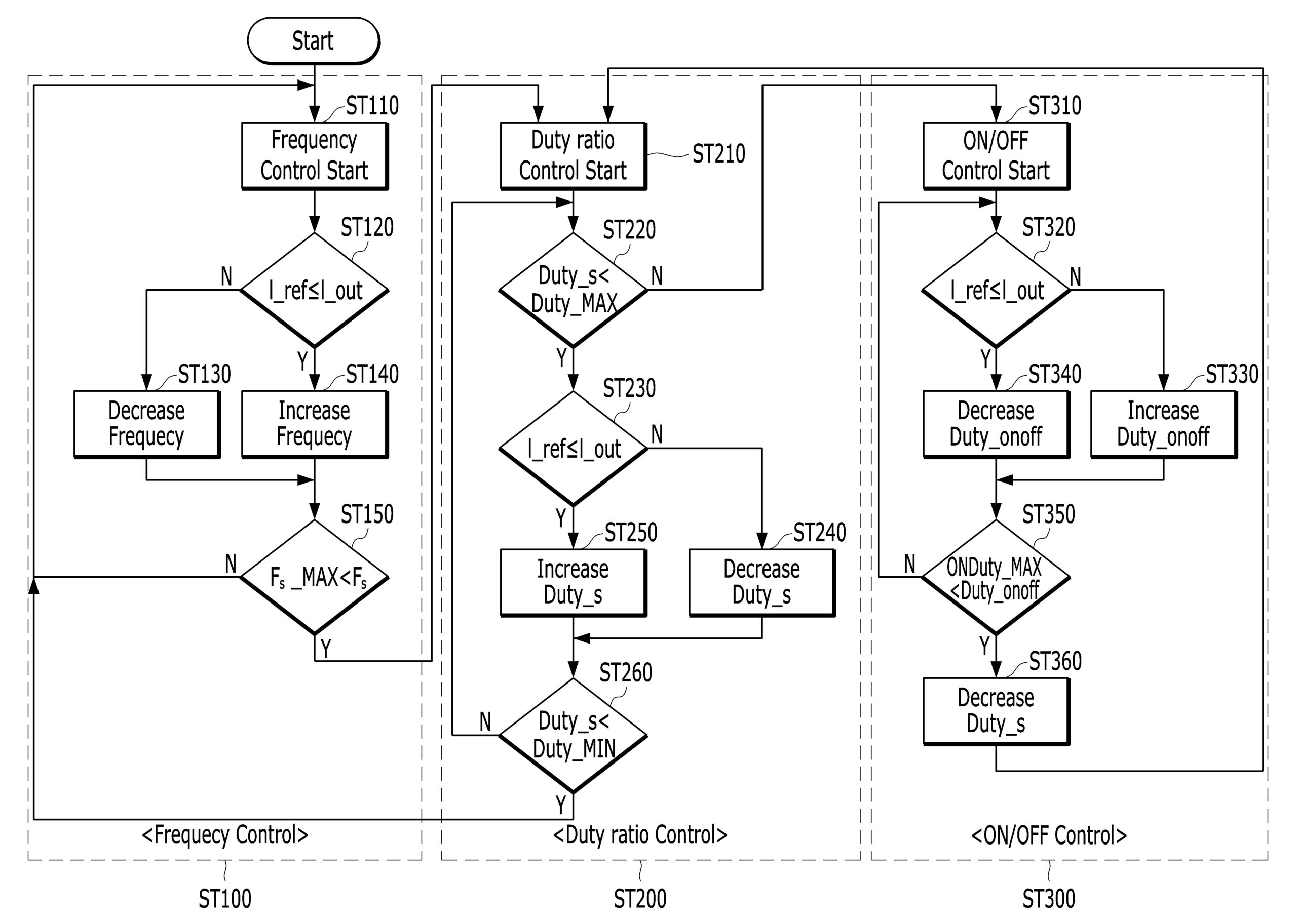 본 발명에 따르면, 비대칭 단일 스테이지 LLC 공진형 컨버터를 적용하여 스위칭소자의 개수를 줄이고 장치의 효율을 높이면서 버스 커패시터의 전압 스트레스를 줄일 수 있으며, PFC를 정상 범주에서 동작시키면서 스위칭 주파수 제어 영역, 스위칭 듀티비 제어 영역, 상단 스위칭소자의 ON/OFF 제어 영역을 결합하여 출력 이득을 조절함으로써 최대한 넓은 범위의 디밍 제어를 가능하게 함으로써, LED의 장점을 극대화 할 수 있고 LED의 디밍 범위를 최대한 넓게 할 수 있는 효과가 있다.