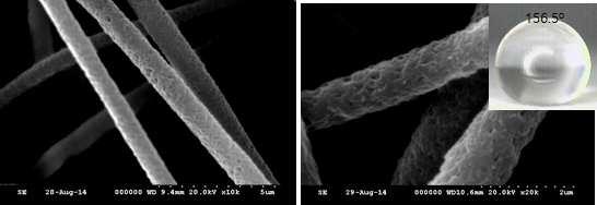 나아가 본 발명에 의한 다공성 PVDF 나노섬유는 기공이 다수 형성되어 비표면적이 넓으며 물과의 접촉각이 크기 때문에 수중유를 제거하기 위한 필터의 전단계에서 사용되는 프리필터로서 매우 적합한 특성을 나타내며, 프리필 터의 사용을 통해서 고가인 필터의 수명을 늘릴 수 있는 뛰어난 효과를 나타낸다.