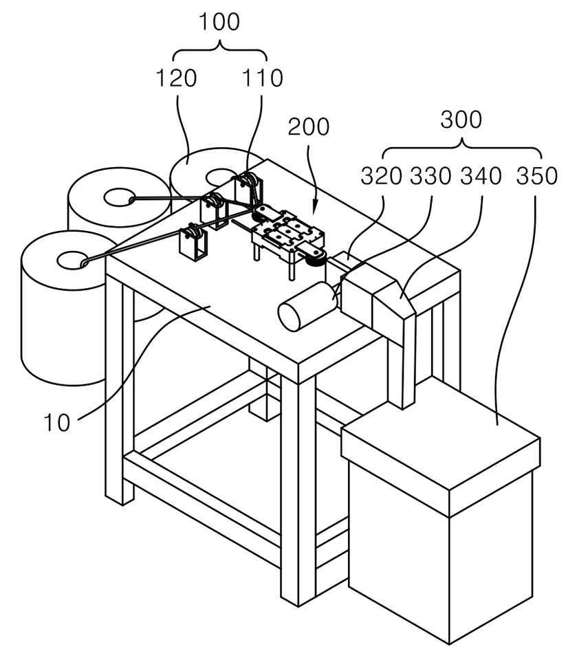 출하여 공급하는 유리섬유공급부와, 내부에는 상기 유리섬유공급부에서 추출된 유리섬유가 통과할 수 있도록 경