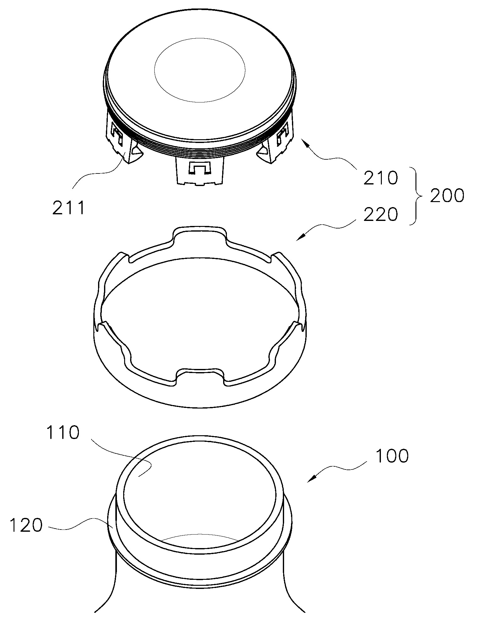 본 발명은 마개와 용기의 원터치 개폐 구조에 관한 것으로서, 특히, 기존의 원터치 개폐 구조를 보다 간단하게 개선하여 성형성 및 생산성을 높이는 한편, 밀폐 시에는 용기의 내압 혹은 외력에 의해 스스로 열리는 것을 신뢰성 높게 방지하며, 개봉 시에는 보다 부드럽고 원활하게 개봉되도록 하기 위한 것으로서, 입구(110)와, 외주면에 형성된 걸림턱(120)을 포함하는 용기(100)와; 상기 걸림턱(120)에 대응하는 후크부재(211)가 형성되어 상승에 따라 상기 용기(100)의 입구(110)를 개방시키고 하강에 따라 상기 후크부재(211)가 상기 걸림턱(120)에 걸쳐져 상기 용기(100)의 입구(110)를 폐쇄시키는 밀폐부(210)와, 상기 밀폐부(210)를 내측으로 수용하기 위한 통 형상체로 이루어진 커버부(220)를 포함하는 마개(200)로 구성되어, 보다 간단한 구조를 통해 일체로 사출 성형된 마개를 누르는 동작만으로 밀봉이 이루어지기 때문에 제품의 생산성 및 조립성을 크게 증대시키는 한편, 한 손만을 이용하여 손쉽게 개봉하는 것이 가능하여 사용자의 이용 편의성을 향상시킬 수 있으며, 최초 개봉 여부 또한 손쉽게 확인할 수 있어 제품의 상품성 및 시장경쟁력을 극대화시킬 수 있도록 하는 것이다.