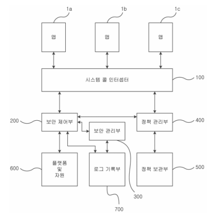 요약 : 본 발명은 모바일 단말의 보안 감시 시스템 및 이를 이용한 모바일 단말의 보안 감시 방법에 관한 것으로서, 모바일 단말에 설치된 앱에서 모바일 단말의 자원을 요청함에 따라 발생하는 시스템 콜을 수집하는 시스템 콜 인터 셉터; 상기 시스템 콜의 안전성을 정책으로 저장하고 있는 정책 관리부; 그리고 상기 시스템 콜 인터셉터에서 수집한 상기 시스템 콜을 전달받고, 상기 시스템 콜이 상기 정책 관리부에 저장된 상기 정책에 부합하는 지 여부를 판단하여, 시스템 콜이 정책에 부합하는 경우 해당 시스템 콜을 실행하여 상기 시스템 콜에서 요청하는 상기 모바일 단말의 자원을 추출하여 상기 시스템 콜을 발생한 해당 앱으로 자원을 전달하지만, 정책에 부합하지 않는 경우 해당 시스템 콜의 실행을 거부하는 보안 제어부;를 포함하는 것을 특징으로 한다. 이로 인해, 모바일 단말에 설치된 프로그램에서 모바일 단말의 자원에 접근하는 시스템 콜을 감시하여 모바일 단말의 정책의 적합 여부를 판단하여 해당 시스템 콜을 실행하거나 거부하는 제어를 수행함으로써, 모바일 단말의 자원을 보호하여 보안 성을 향상할 수 있다.
