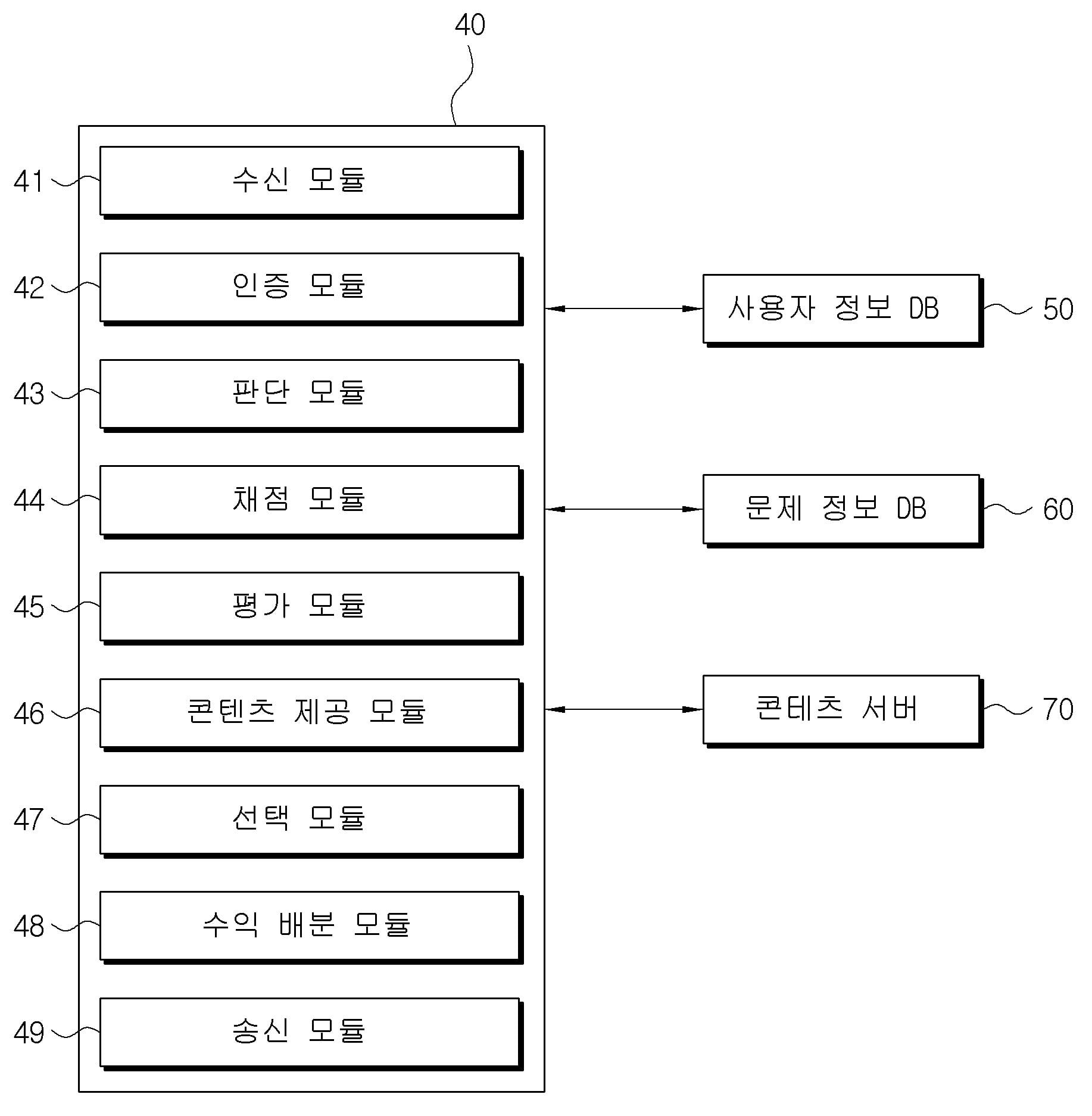 대응하는 문제정보를 저장하는 문제정보 데이터베이스, 통신망 또는 중계기를 거쳐 상기 학습자 단말기를 통해