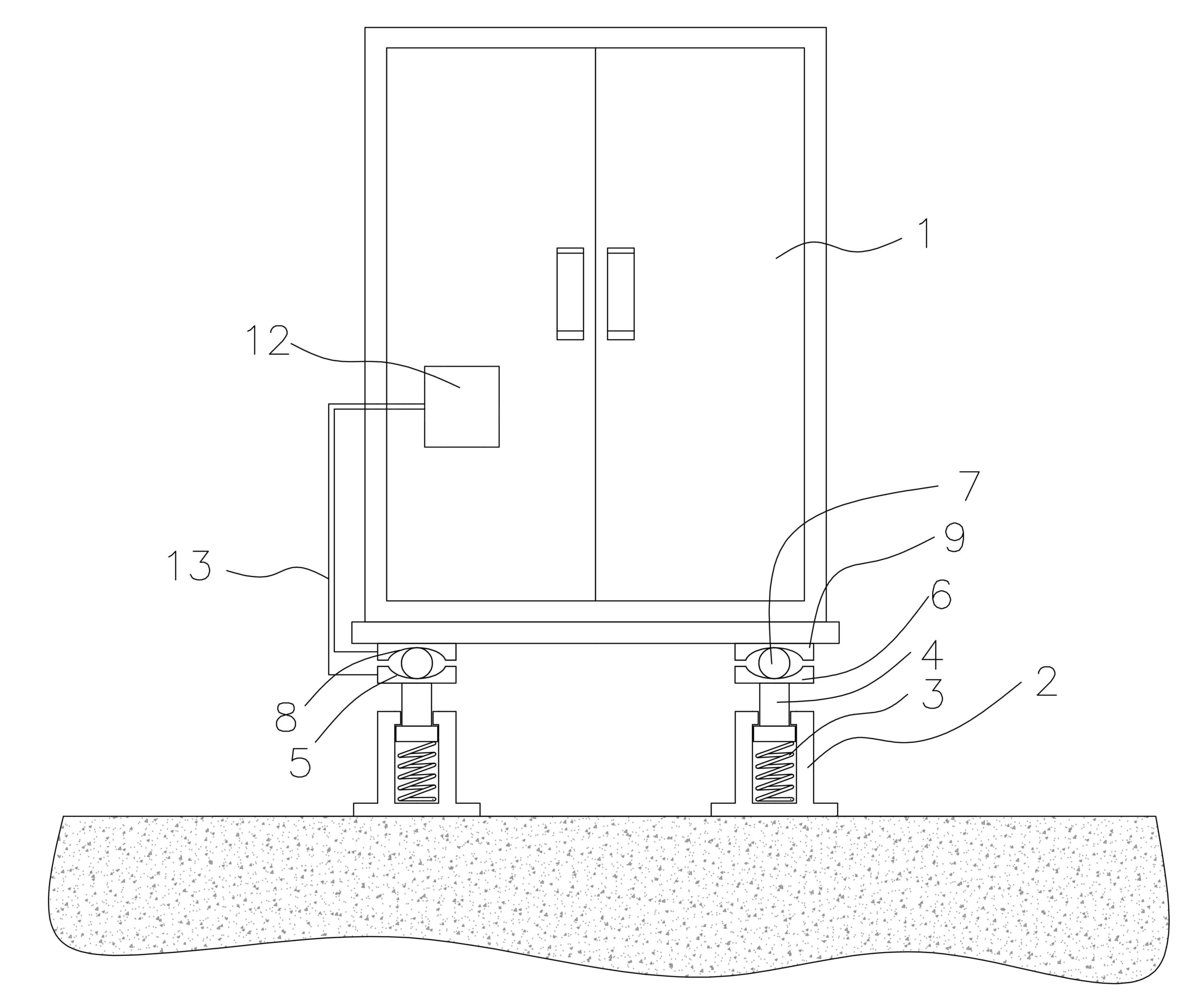 본 발명은 지진 등의 발생에 따른 외력에 대해 안정적으로 저항하면서도 외부에서 가해진 외력의 특성을 정확히 파악하여 향후 유지보수 등의 관리계획 수립이 용이하도록 하는 배전반에 관한 것으로서, 전기 장치나 통신 장치가 내부의 공간부에 수용되고 일측에 개폐 도어가 설치되는 배전반 본체, 상기 배전반 본체의 하측에 위치하는 지면에 서로 이격되어 고정 설치되고 내부에 수용 공간이 형성되는 복수의 고정부, 상기 고정부 각각의 수용 공간에 수용되는 탄성체, 하부 일부가 상기 고정부의 수용 공간에 삽입된 상태로 상기 탄성체에 의해 탄성 지지되는 이동부, 상기 이동부의 상단에 결합되고 상면에 하측을 향해 오목한 곡면을 이루는 하측 그루브가 형성되는 하측 지지체, 상기 하측 지지체의 하측 그루브에 위치하는 구 형태의 이동 볼, 상기 하측 지지체의 상부에 상기 이동 볼에 의해 하측 지지체와 이격되어 위치하고 하면에 상기 하측 그루브와 대응되는 형상으로 이루어지고 상측을 향해 오목한 곡면을 이루는 상측 그루브가 형성되며 상기 배전반 본체가 상면에 고정되는 상측 지지체 및 상기 상측 지지체와 하측 지지체의 상대 이동에 의한 위치 변화를 검출하는 외력 감지 수단을 포함하여 구성되는 것을 특징으로 한다.
