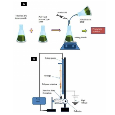 본 발명은, 나노섬유 형태의 산화티타늄에 복합 산화물을 도핑함으로써, 나노구조 및 양이온 사이의 전자 전이에 의해서 수소 생산 능력이 향상되는 효과가 있다.