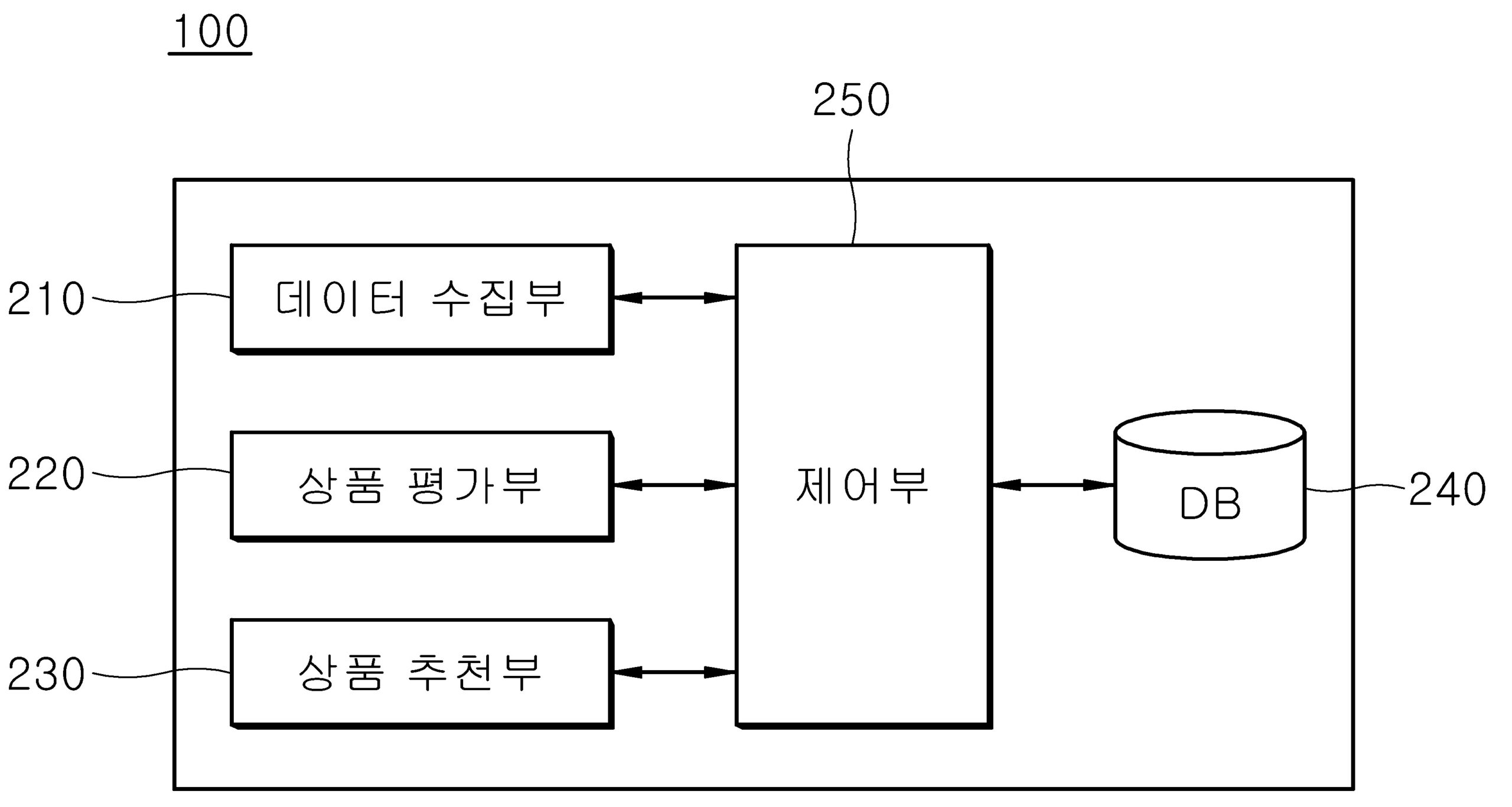 본 발명의 일 실시예에 따른 사용자 구매 기준 및 상품 리뷰 기반 상품 추천 시스템은 사용자에 의해 검색된 상품에 관한 상품 리스트와 상기 상품에 관한 상품 리뷰 데이터를 수집하는 데이터 수집부; 상기 상품 리뷰 데이터에 내포되어 있는 긍정 평가와 부정 평가를 수치화하여 상기 상품에 대한 평가 점수를 산출하는 상품 평가부; 및 상기 산출된 평가 점수에 기초하여 상기 상품 리스트로부터 상기 사용자에게 추천할 상품을 추출하여 상기 사용자에게 제공하는 상품 추천부를 포함한다.