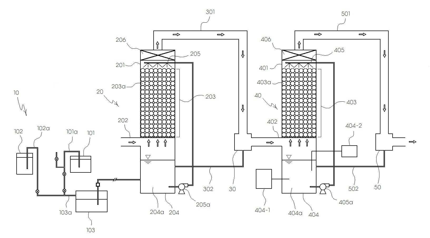 또한 산성세정탑 내의 산성세정액적이 후단의 알칼리세정탑으로 유입되는 것을 차단함으로써, 알칼리세정탑에서의 산, 알칼리 중화작용에 의해 약품소모량이 늘어나는 것을 효과적으로 방지할 수 있는 복합악취제거장치 및 이를 이용한 복합악취제거방법에 관한 것이다.