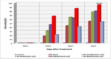 대표청구항 : 바실러스 투린지엔시스 아종 쿠르스타키 (Bacillus thuringiensis subsp. kurstaki) KB100 균주 (KACC 91456P) 또는 이의 배양액 및 40 mM의 탄닌산을 유효성분으로 함유하는 작은가시들명나방 살충용 조성물.