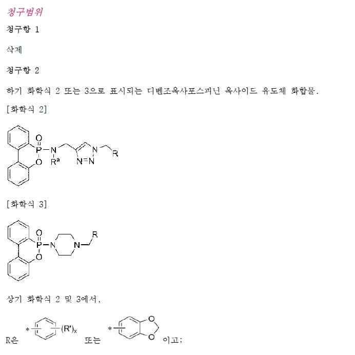 요약 : 본 발명은 디벤조옥사포스피닌 옥사이드 모핵의 6번 위치에 다양한 질소 함유 치환체가 도입된 신규한 디벤조옥