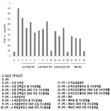대표청구항 : α-락트알부민(α-Lactalbumin, α-LA),β-락토글로불린(β-lactoglobulin, β-LG) 및 소혈청알부민(Bovine Serum Albumin, BSA)으로 이루어진 군으로부터 선택되는 1종 이상의 유청 단백질에 알칼라아제(alcalase)를 처리하여 얻은 가수분해물을 함유하는 것을 특징으로 하는 염증 질환의 예방 또는 치료용 조성물.