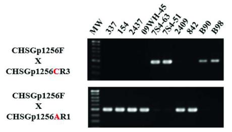 요약 : 본 발명은 서열번호 1의 양배추 CHS 유전자의 염기서열 중 1256번째 염기에 위치한 SNP(single nucleotide polymorphism)를 포함하는 8개 이상의 연속된 뉴클레오티드로 구성된 폴리뉴클레오티드 또는 이의 상보적인 폴리뉴클레오티드를 포함하는, 양배추 자색 품종을 판별하기 위한 SNP 마커 조성물, 프라이머, 프로브 및 마이크로어레이, 상기 프라이머 및 증폭 반응을 수행하기 위한 시약을 포함하는 양배추 자색 품종을 선별하기 위한 키트 및 양배추 자색 품종의 선별 방법을 제공한다.