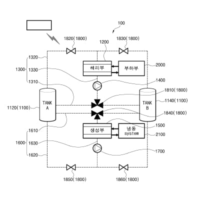 기 냉방라인부와 상기 충진라인부에 구비되며 상기 복수개의 저장탱크와 상기 해리부 및 상기 생성부의 연결을