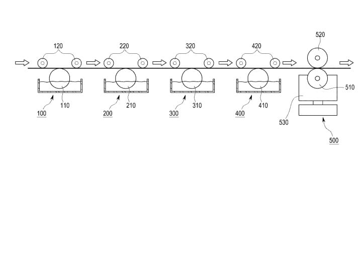제 2버퍼층 형성부 및 캐소드전극 형성부가 롤-투-롤 방식으로 순차적으로 배열되어 이루어지고, 상기 애노드전