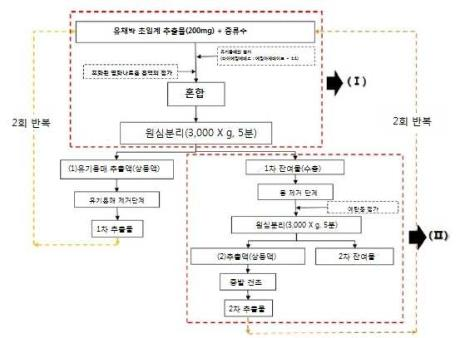 대표청구항 : 유채박 CO2 초임계 추출물에 물을 첨가하여 수용액을 얻는 단계(단계1);상기 단계 1의 수용액을 다이에틸 에테르 및 에틸 아세테이트 혼합 유기용매로 추출하여 유기용매 추출액을 얻는 단계(단계 2); 및상기 단계 2의 유기용매 추출액으로부터 유기용매를 제거하는 단계(단계 3);를 포함하되, 상기 단계 1 내지 단계 3을 적어도 2회 이상 반복하여 추출하는 유채박 CO2 초임계 추출물로부터 시나핀의 제거방법.