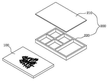 대표청구항 : 페인트 및 상기 페인트와 혼합되는 접착제를 수용할 수 있는 키트 몸체(220);상기 키트 몸체(220) 내부에 공기의 유입을 차단하면서 키트 몸체(220)의 상면을 커버하는 키트 커버(210); 및그 일면에 밑그림이 도시되어 있고, 상기 접착제 및 페인트를 혼합시켜 도포할 수 있는 그림판(100);을 포함하되,상기 페인트는,0.5mm 내지 0.7mm의 크기로 분쇄된 이끼와 영양액을 1:1 중량 비율로 혼합하여 제조되는 것을 특징으로 하며,상기 영양액은 일라이트, 다이어토마이트, 제올라이드 및 벤토나이트를 1:1:1:1 중량 비율로 혼합한 뒤 혼합된 물질에 혼합된 물질의 100 중량부 기준으로 물을 100 중량부 혼합하여 제조되는 것을 특징으로 하고,상기 접착제는,겔 상태의 알지네이트, 카르복시 메틸 셀룰로오스 및 흡수성 폴리머를 1:1:1 중량 비율로 혼합한 뒤 옥신 및 지베렐린을 더 첨가하여 제조되어, 상기 밑그림에만 페인트가 접착되도록 하는 것을 특징으로 하는 페인트를 포함하는 키트.