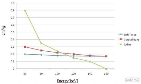 대표청구항 : 조영제를 체내에 주입한 후 간을 타겟으로 1차 스캔하는 단계;상기 1차 스캔과 동일한 조건에서 X-선 튜브의 에너지(kV)만 상기 1차 스캔시 사용된 에너지(kV)를 기준으로 저에너지 수준 또는 고에너지 수준으로 설정하여 상기 간을 2차 스캔하는 단계; 및 상기 1차 스캔으로 얻어진 제1촬영영상과 상기 2차 스캔으로 얻어진 제2촬영영상에 나타나는 상기 사용된 에너지 수준에 따른 물질의 감쇄정도에 의한 차이를 비교하는 단계를 포함하는데, 상기 제1촬영영상에서 일정값 이상으로 추출된 그레이값을 통해 추출된 간조직들과 조영제분포부를 상기 제2촬영영상에 나타난 감쇄값을 통해 구별하고, 상기 조영제분포부가 구별되어 확인되면 과혈관성 간세포암으로 진단되는 것을 특징으로 하는 이중 에너지 원리를 이용한 간조직 CT영상 해석방법.