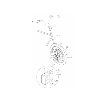 요약 : 본 발명은 자전거의 프레임(10)과 바퀴(20)를 개재하여 발전하는 장치에 있어서: 상기 바퀴(20)에 홀더(32)를 개