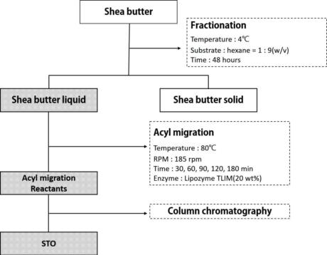 대표청구항 : sn-1 위치는 포화 지방산이고, sn-2, sn-3 위치는 불포화 지방산인 TAG(SUU)를 포함하는 유지를 Lipase 존재하에 아실 마이그레이션 반응시키는 단계(단계 1); 및상기 아실 마이그레이션 반응시켜 제조된 저소화성 유지 조성물을 정제하는 단계(단계 2); 를 포함하는 저소화성 유지 조성물의 제조방법이되,상기 제조방법에 의하여 제조되는 저소화성 유지 조성물은 소장에서의 가수분해율이 50% 이하이고,저소화성 유지 조성물 100 중량에 대하여, sn-1, sn-2, sn-3 위치 모두 포화 지방산인 TAG(SSS)를 2-8 중량%; sn-1, sn-3 위치는 포화 지방산이고, sn-2 위치는 불포화 지방산인 TAG(SUS)를 4-9 중량%; sn-1, sn-2 위치는 포화 지방산이고, sn-3 위치는 불포화 지방산인 TAG(SSU)를 2-6 중량%; sn-1 위치는 포화 지방산이고, sn-2, sn-3 위치는 불포화 지방산인 TAG(SUU)를 30-40 중량%; sn-2 위치는 포화 지방산이고, sn-1, sn-3 위치는 불포화 지방산인 TAG(USU)를 0.2-6 중량%; 및, sn-1, sn-2, sn-3 위치 모두 불포화 지방산인 TAG(UUU)를 5-25 중량%;를 포함하는 것을 특징으로 하는,저소화성 유지 조성물의 제조방법.