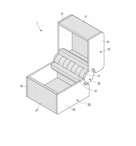 상기 수납부재와 덮개부재를 힌지가능하게 연결하는 힌지부재를 포함하며, 상기 덮개부재, 수납부재 및 힌지부재