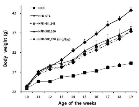 요약 : 본 발명은 칠면초 추출물을 유효성분으로 함유하는 항비만용 조성물에 관한 것으로, 본 발명의 칠면초 추출물은 비만이 유도되는 동물모델의 체중, 피하지방조직 및 내장지방조직의 감소효과를 나타내고, 피하지방조직에서의 UCP-1 발현 증가 및 추위에 노출되었을 때 체온을 상승시켜 에너지 대사를 촉진하는 효과가 있으므로, 본 발명의 칠면초 추출물을 유효성분으로 함유하는 항비만용 조성물은 항비만용 건강기능식품 또는 비만치료제로 유용하게 사용가능하다.
