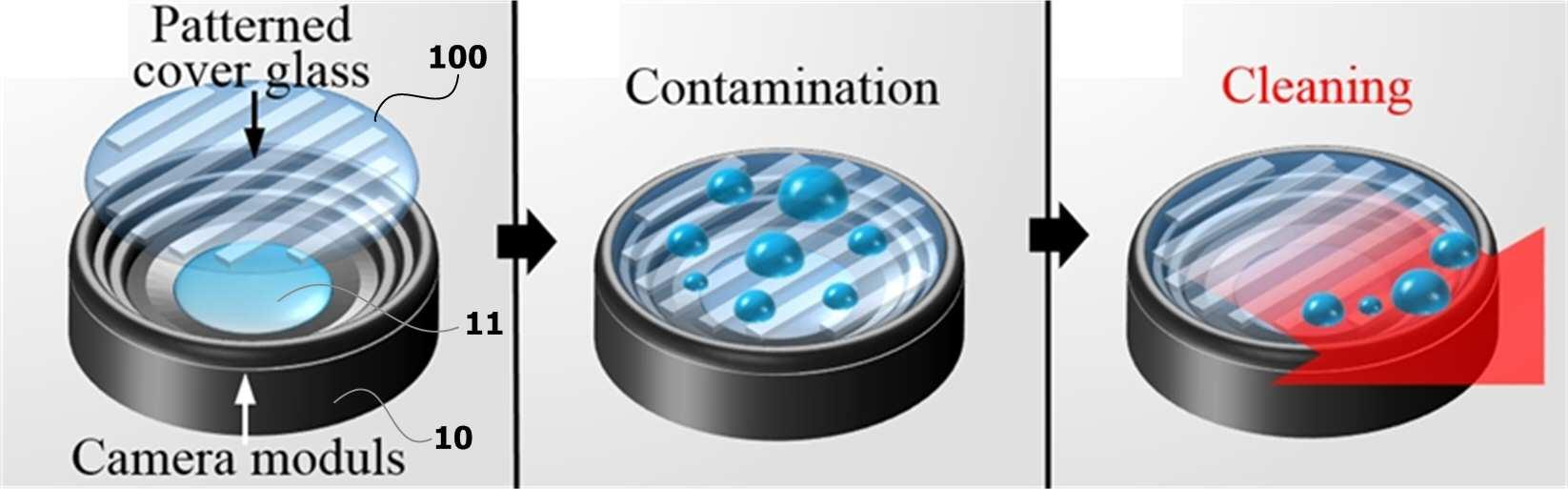 카메라 렌즈부를 클리닝하는 장치 및 방법이 제공된다. 본 발명의 일 실시예에 따른 커버 글래스(Cover Glass;Substrate), 상기 커버 글래스의 상면에 연속으로 배치되는 복수의 전극(Electrode), 상기 전극의 상면에 적층되는 절연 층(Dielectric Layer) 및 상기 절연 층의 상면에 적층되며, 액적(droplet)이 표면에 형성되는 소수성 층(Hydrophobic Layer)을 포함하되, 서로 다른 직류 전압을 상기 전극들 중 복수의 전극들에 인가하는 방식을 통하여 상기 액적이 상기 커버 글래스의 중앙으로부터 외측 방향으로 이동한다.