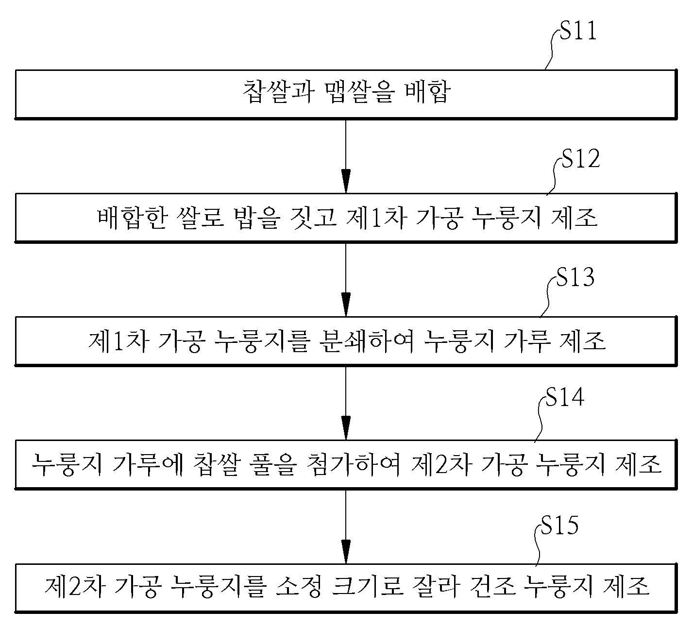 본 발명에 따른 컵 누룽지는, 용기, 찹쌀과 멥쌀을 배합한 후, 밥을 지은 후, 지은 밥알로 제1차 가공 누룽지를 만들고 나서, 제1 차 가공 누룽지를 분쇄하여 누룽지 가루를 만든 다음, 누룽지 가루에 찹쌀 풀을 첨가하여 만든 제2차 가공 누룽지를 소정 크기로 잘라 만들어 용기 내에 담긴 건조 누룽지, 분말 스프 및 건더기 스프를 포함한다.