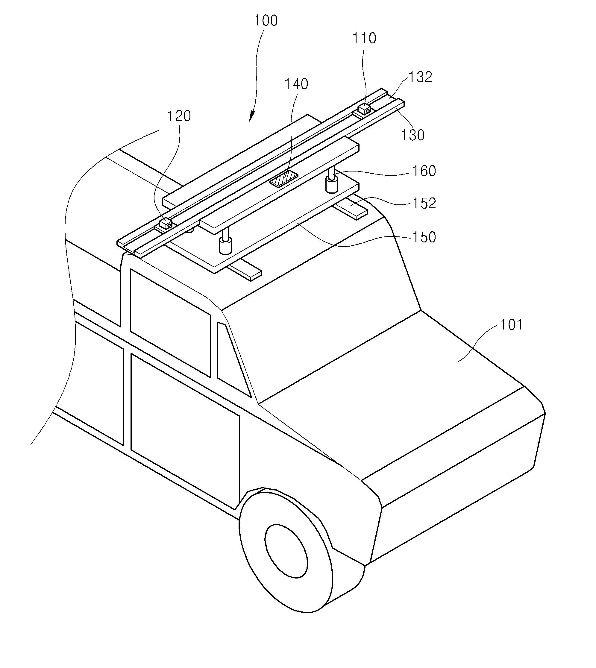 본 발명의 일 실시예에 따른 터널 및 사면 조사용 입체 영상 촬영 장치는 제1 및 제2 카메라; 상기 제1 및 제2 카메라의 장착을 위한 복수의 장착부를 구비하고, 수평 방향으로 배치되는 수평판; 상기 수평판에 형성되어 상기 수평판의 수평 상태를 표시하는 수평 센서; 차량의 지붕에 고정 설치되는 베이스판; 및 상기 베이스판의 상부에 고정 설치되어 상기 수평판을 지탱하고, 수직 방향으로 승강 또는 하강 동작하여 상기 수평판의 수평을 유지하는 복수의 높이 조절축을 포함하고, 상기 제1 및 제2 카메라는 상기 수평 센서에 의해 상기 수평판이 수평 상태인 것으로 표시될 때 터널 막장 또는 사면을 촬영한다.