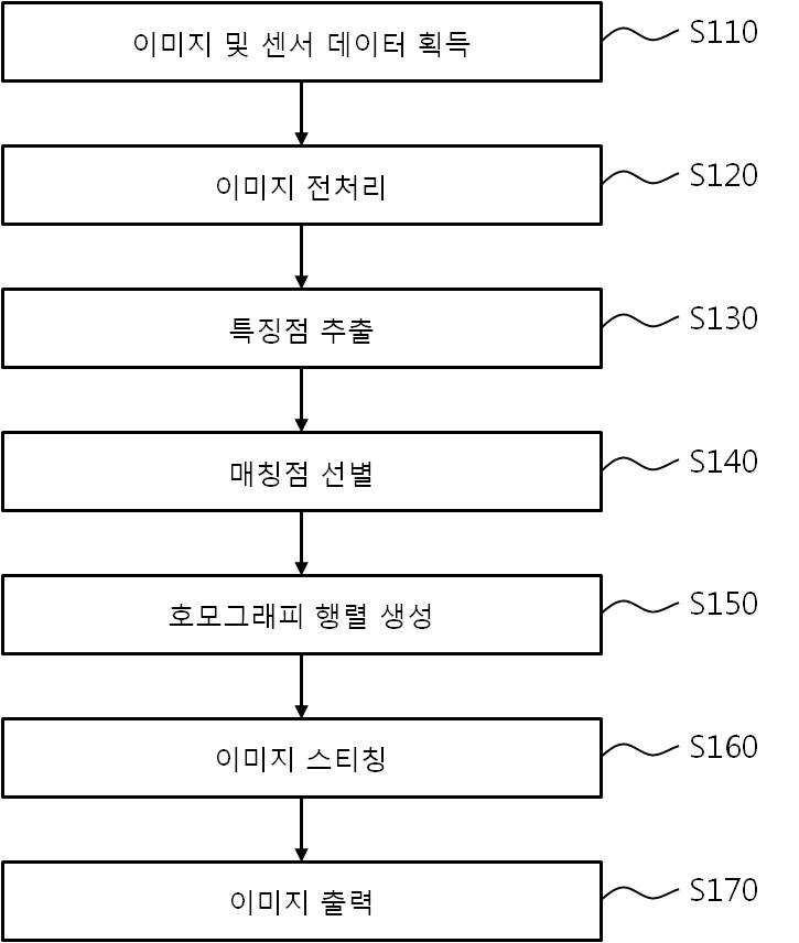 파노라마 이미지 생성 방법 및 장치가 개시된다. 파노라마 이미지 생성 방법은, 카메라를 이용하여 제1 이미지(image1) 및 제2 이미지(image2)를 획득하고, 기울기를 탐지하는 센서를 이용하여 각 이미지에 대한 센서 데이터를 획득하는 단계, 센서 데이터를 이용하여 각 이미지의 x축, y축 및 z축의 회전각을 산출하는 단계, 산출된 x축, y축 및 z축의 회전각을 이용하여 제1 이미지와 제2 이미지의 위치를 서로 맞추는 보정을 수행하여 각 이미지의 전처리를 수행하는 단계, 전처리된 각 이미지에서 특징점을 추출하는 단계 및 추출된 특징점을 이용하여 제1 이미지와 제2 이미지를 스티칭(stitiching)하는 단계를 포함한다.