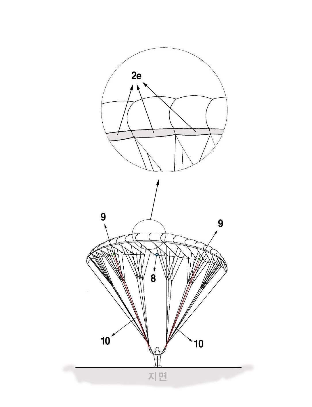 본 발명은 공기주입 밸브가 구성된 패러글라이더의 캐노피에 관한 것으로, 더욱 상세하게는 패러글라이더의 캐노피를 공기가 빠지지 않는 풍선처럼 인위적으로 공기펌프를 이용하여 공기를 주입하고 배출하는 것이 가능토록 캐노피에 밸브를 부착하여 구성한 형태의 패러글라이더에 관한 것으로, 고고도 비행을 위한 산 정상과 같은 장소에서 사용되는 캐노피로는 다소 적합하지 않지만, 비행경험이 전혀 없는 초보자가 지상에서 활공의 이륙과 착륙의 행위연습을 반복해서 실시할 때, 재미있게 체공상태를 체험할 수 있는 양력체험 및 연습용 캐노피인 것이다.