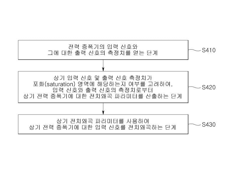 구성되며, 상기 전치왜곡 산출부에서는 상기 전력 증폭기의 입력 신호 및 출력 신호 측정치가 포화(saturation)