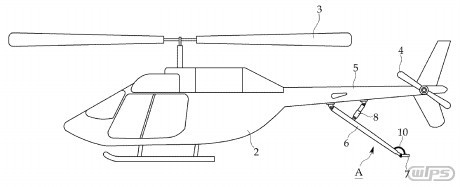 대표청구항 : 헬리콥터의 테일붐(5)에 장착되는 완충장치에 있어서,상기 테일붐(5)의 하부에 상단이 힌지결합되며, 하부에 고정홈(69)이 형성되고, 상기 고정홈(69)의 내측에 관통홀(67)이 형성된 지지대(6);상기 지지대(6)의 하단에 일단이 힌지결합되며 상부에 일정 길이의 절개홈(72)이 형성되며 내부가 비어있는 접지대(7);호형으로 구부러지고, 그 양단에 하부측 및 상부측 머리부(92,94)가 형성되며, 상기 하부측 머리부(92)는 상기 접지대(7)의 내부에 삽입된 고정체(74)에 고정되고, 상기 상부측 머리부(94)는 상기 지지대(6)의 고정홈(69)에 삽입되는 가이드봉(9);상기 가이드봉(9)의 외주면에 결합되며, 일단부는 상기 접지대(7)에 지지되고, 타단부는 상기 지지대(6)에 지지되는 탄성체(10)를 포함하는 것을 특징으로 하는 헬리콥터용 완충장치.