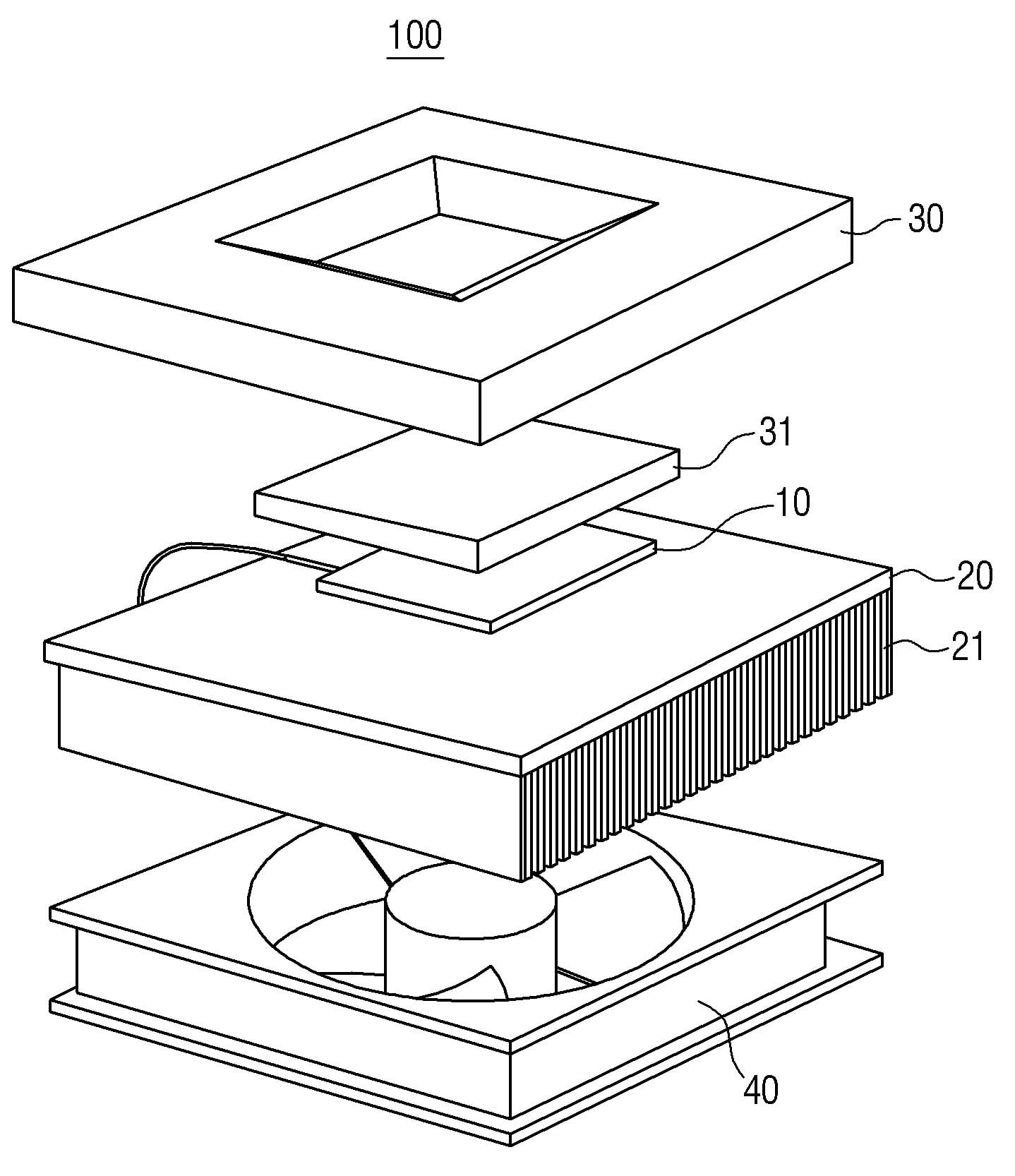 처리 장치에 있어서, 인가되는 전류에 의해, 일면은 냉열부, 타면은 가열부로 구성되는 열전소자; 상기 냉열부