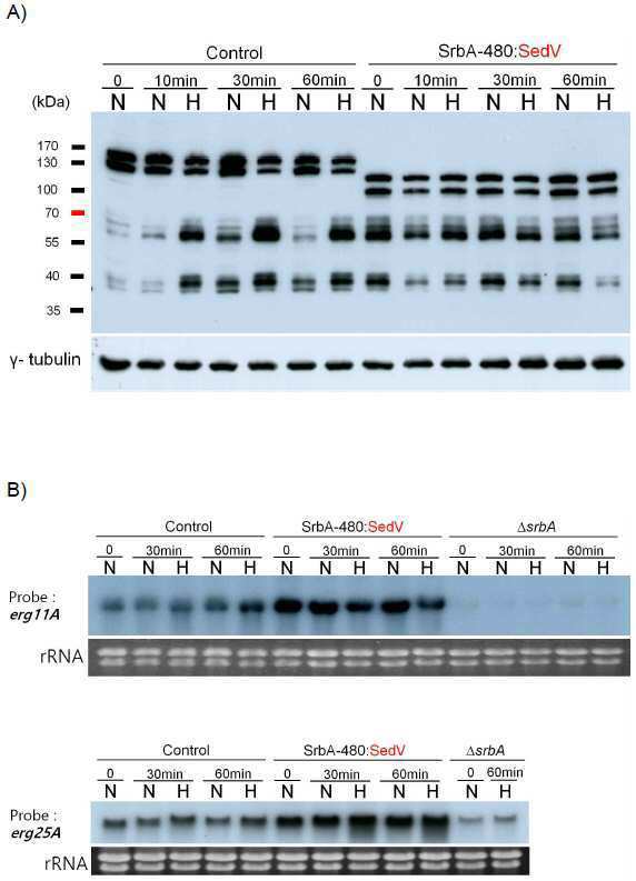 본 발명은 SrbA 단백질 단편을 코딩하는 유전자 및 초기 골지 상주(early golgi resident) 단백질을 코딩하는 유전자를 포함하는 재조합 벡터 및 상기 벡터로 형질전환된 ΔsrbA 재조합 아스파질러스 니듈런스(Aspergillus nidulans) 균주에 대한 것이다.